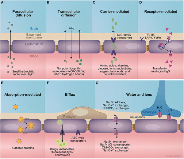 In its brain-protective role, the BBB has been a great hurdle for brain drug delivery. Given that only small, lipid molecules can cross the BBB, the following 3 mechanisms are being used to carry treatment substances across the BBB to fight infections or correct imbalances in such as stroke, diabetes, seizures, M.S., Parkinson’s and Alzheimer diseases.