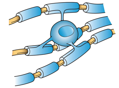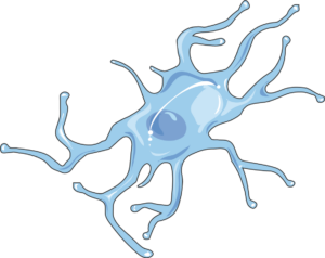 Astrocytes. Named for their star-like shape. their main function is to maintain the integrity of blood brain barrier (BBB). Their “end-feet” at the end of their protrusions are often wrapped around the endothelial cells (ECs) that surround blood vessels to provide the ECs the compounds they need to maintain a healthy BBB.
