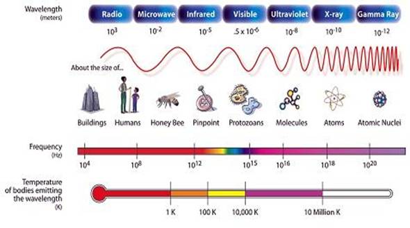 The sun radiates an electromagnetic spectrum into space over a range of frequencies – from zero frequency (a static field) to trillions of cycles per second, which electromagnetic radiation (EMFs) we have named: