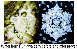 Water can carry energy necessary for our health. Natural energy (e.g. the geomagnetic field, sunlight) can be transferred to water, causing its molecules to take an orderly, crystal-like form, which can change shape. Thus, information from a natural energy source can be held in the crystal’s structure. Water from a deep well or a bubbling mountain stream, or distilled water (empty of energy) exposed to positive thoughts (such as love and gratitude), prayer or soothing music contains structure. Dr. Masaru Emoto, a Japanese researcher and author of “The Message from Water”, captured the images of water shown here using a device called a magnetic resonance analyzer.Dr. David Schweitzer, grandson of Albert Schweitzer, was the first scientist to photograph the effects of thoughts, captured in water.