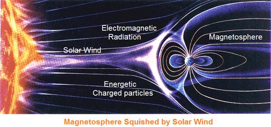 Geomagnetic field distorted by solar wind and the sun’s electromagnetic radiation
