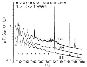 - All sites have 82 Hz. produced by a Russian submarine communication system