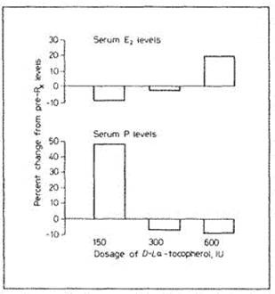 - Excessive vitamin E (>600 IU) intake reduces LDL-Cholesterol – a precursor for producing PROGESTERONE