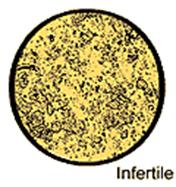During the INFERTILE period the pattern is random, and unconnected dots appear.
