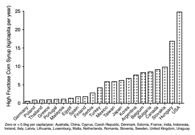 It is interesting to note that many countries do not include much HFCS in their diet. And only Hungary comes even close to the HFCS consumption in the U.S.