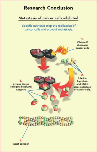 The Dr. Matthias Rath Cellular Solution incorporates adequate doses of Lysine, Proline, Vitamin C and the catechin EGCG, and is designed to stop the metastasis of cancer and should be included in any cancer treatment plan