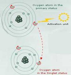 Energy input (radiation) to 3O2 Sensitizer with light and oxygen.(Basis of PDT for cancer) |