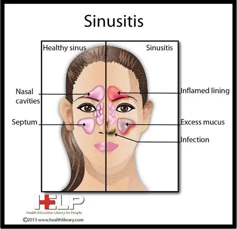 | Symptoms | Stuffy nose, runny nose, eyes that are red/itchy/watery, sneezing, wheezing, rash, fatigue | Symptoms: Stuffy nose, swollen and painful sinuses, post-nasal drip, chronic cough, fatigue, bad breath, low fever |